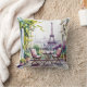 Paris Balcony View Eiffel Torn Watercolor Pillow Kudde