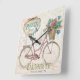 Paris Bike with Flowers in Front Fyrkantig Klocka