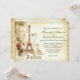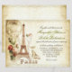 vackra inbjudningar till vintage bröllop för bröllop i Paris, Frankrike. Målade Eiffel torn med ro teckning och fjärilar, vacker typografi, brun gammal papper bakgrund och några snabbt antika accenter.
