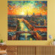 En målning i Paris nattetid med Eifel Torn i bakgrunden som målats i stil på den berömd nederländska målaren Vincent van Gogh