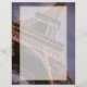Letterhead med ett foto av den berömd europeiska landmärket - Eiffel Torn, uppåtvänd på vinkel ge, det är ett intressant perspektiv. Fotografiet ger en fin avslutning av det intressanta metall lattice-arbetet i torn. En halvgenomskinlig övertäckning med guld gräns läggs överst för att skriva vidare.