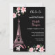 Paris Eiffel Torn Black and Rosa Blommigt Birthday Inbjudningar