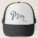 Denna moderna svarta Paris, Eiffel Torn med rosa båge ser snyggt ut på den här Truckerkepsen. Grafik efter Inge Lewis. Mycket chic för shopping, skola, strand, lunch med mera. Det här är en underbar gåva till Paris älskare. Hitta fler matchande objekt i ingeinc.com-butiken.