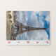 En vacker syn på Eiffel Torn i Paris i Frankrike från floden Seine tryckt på ett pussel.