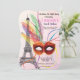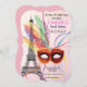 Paris Masquuppad-inbjudan till Sweet sixteen. Eiffel Torn med vacker, färglös mask med fjädrar.