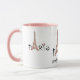 Paris med Eiffel Torn. Svart skrift och rosa Eiffel Torn. Roligt mugg. Olika tillgängliga färger. Redigerbar namn.