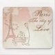 Paris - staden kärlek. Ett par i kärlek sitta på en bänk framför Eiffel Torn. Grafik efter GraphicMarket