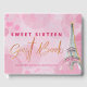 Anpassa den här eleganten gäst bok för Paris-temat party. "Gäst Bok" är handskrivet i en slående kalligrafi, i guld och burgundy, och samma stil används för skriva "Oj La!" på baksidan. Resten av typografin, på framsidan och ryggraden, är fullt redigerbar för kostym din Paris-temade födelsedagsfest. Utformningen av Eiffel-Torn i Paris är vattenfärgad med höjdpunkter för rosa och guld. På framsidan och baksidan finns en söt rosa mönster av borbubblor som delas av ryggraden, som är burgudröd med vit rubrik. Exempeltexten är till för en Sweet sixteen Guest Bok - en underbar keepsaké för en 16-årsdag.