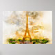 Paris Eiffeltornet Akvarell Solnedgång Konsttryck Poster