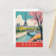Paris Frankrike Eiffel Torn Retro Travel Blommigt Vykort