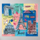 Global Travel II av Farida Zaman. Bilden har staden Paris, Frankrike med olika berömdar och inslag i staden. | SID23322