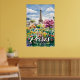 En vattenfärgsmålning som skildrar en bild av Paris, Frankrike. Eiffel Torn står högt mitt i blommande blommor och lush grey. Målningen framkallar en känsla av lugn och skönhet, som fångar Paris innersta väsen som en drömstad.