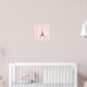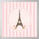 Snygg och toppen gig baby-design med ett brunt Eiffel-Torn med ett rosa band överst. Söta blommor vid torn-basen, liksom rosa rand och andra ömtåliga prydnadsföremål.