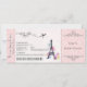 Här är en utskrivbar dubbelsidig Paris-tema Boarding Pass-inbjudan som du kan använda på dina speciella evenemang!