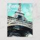 "Paris je t'aime" Retro Eiffel Torn-postkort i Teal 'Paris I kärlek you'