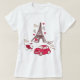 Gullig tecknaddesign med det Eiffel torn, ett rött kort, en valp, hjärtor och ord "Paris",