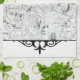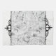 16" x 24" kökshandduken med en avbilda av en svartvit karta av Paris med svart scrollwork gränsar. Se att matcha trasaservetten, den pappra coctailservetten, trasabordstablett, papper bordstablett och underlägg. Se den hela Cancankökshandduksamlingen i linnena för FOOD/BEV | dela upp.