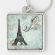 Paris La Tour Eiffel-Fransk Design Fyrkantig Silverfärgad Nyckelring