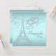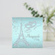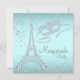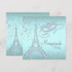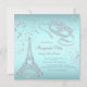 Paris maskeradfest med diamant Eiffeltornet och diamantmask på en snygg tealblå och diamantbakgrund. Denna eleganta tealblå maskeradfestinbjudan kan enkelt anpassas för ditt evenemang genom att helt enkelt lägga till dina evenemangsuppgifter, typsnitt, teckenstorlek och färg samt formulering. Detta är en tryckt design utan riktiga diamanter, glitter etc. Du kan ta bort den tealblå bakgrunden för att lägga till din egen bakgrundsfärg.