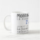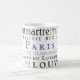 Paris och dess landmärken i vintage typografi, svart på vitt med blå accent. Du behöver inte vara Francofil för att vilja ha den här underbara bilden att lägga till i din samling i mugg!