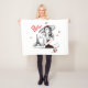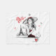 En liten illustration av att en kvinna i en bredbrättare hade druckit kaffe i Paris med Eiffel Torn i bakgrunden. Röda accenter.