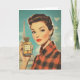 Ett glamoröst vintage affisch på 1950-talet med en sofistikerad kvinna i rödfladdermöss med lyxen parfym flaska som är märkt "PARFYM". Eiffel Torn går upp i bakgrunden och förbättrar chicens parisiska estetik med fet färg, mode och klassisk skönhet.