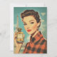 Ett glamoröst vintage affisch på 1950-talet med en sofistikerad kvinna i rödfladdermöss med lyxen parfym flaska som är märkt "PARFYM". Eiffel Torn går upp i bakgrunden och förbättrar chicens parisiska estetik med fet färg, mode och klassisk skönhet.