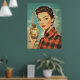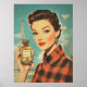 Ett glamoröst 1950-tal vintage affisch med en sofistikerad kvinna i rött fladdermöss med lyxen parfym flaska märkt "PARFUM". Eiffel Torn går upp i bakgrunden och förbättrar chicens parisiska estetik med fet färg, mode och klassisk skönhet.
