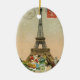 En härlig vintage bild av det Eiffel torn i Paris från en gammal vykort med frimärket och poststämplar gås med av en underbar vintage Santa med en bilfullt av leksaker och barn som bygger en snögubbe vid basera av det Eiffel torn på denna älskvärda och nostalgiska franska themed julprydnad. De omvända något att säga "Joyeux Noel", god jul i franskt, men betraktar att skräddarsy med namn och eller data för en personligprydnad. Denna design är också tillgänglig som en julkort och ett frimärke.