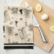 16" x 24" kökshandduk med en avbilda av chic damer och framstående landmarks i Paris på solbränna. Det finns L'arcen de Triumphe, det Eiffle torn och den härliga basilicaen av Sacréen Coeur på toppmötet av Montmartre. Svart randgränser.