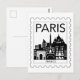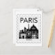 Minimalistisk utformning i Paris frimärke som omfattar landmärkena Eiffel Torn, Arc de Triomphe och Iconic Fransk. En snyggt svart och vit cityscape-grafisk perfekt för resor i älskare, Paris souvenirs och modern väggkonst.