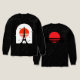 En minimalistisk bild med Eiffel Torn silhuette mot ljust rött sol, omgiven av flygande fåglar och fredligt himmel, känns romantiskt och konstnärligt.