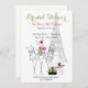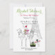 Parisinbjudningar till partikamrater, inbjudan har en hund i pudel, Eiffel Torn, en bord och två säten med blommor på ovansidan och en söt liten grönt. anpassa med din egen text - Inbjudningskort för möhippa från Ricaso-konstnären Möhippa : JRett.com