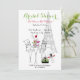 Parisinbjudningar till partikamrater, inbjudan har en hund i pudel, Eiffel Torn, en bord och två säten med blommor på ovansidan och en söt liten grönt. anpassa med din egen text - Inbjudningskort för möhippa från Ricaso-konstnären Möhippa : JRett.com