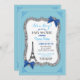 Paris Eiffel Torn Blue Baby Shower-inbjudan - perfekt för alla åldrar! Ändra texten till kostym i party! Utskrift bakåt ingår.