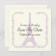 Paris bröllop Eiffel Torn lätt lila Spara datum meddelande. En fullt av klass- och finesser, med Eiffel Torn i lätt lila i en damm gräns på elfenbensbakgrund.