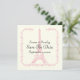 Paris bröllop rosa Eiffel Torn elfenben Spara datum meddelande. En klassisk fullt av klass och finess, med Eiffel Torn i rosa i en damm gräns på elfenbensbakgrund.