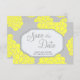 Ett överflöd av generös gult blåser på gråttets bakgrund med indrag i ramform för din anpassningsbar sparar information om datumet personlig bröllop. Trendigets moderna palett i färg i en elegant låg kostnad för högkvalitativ blommigt inbjudan från budgetens Möhippa.