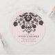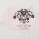 Modern parisisk chic blommig inbjudan med mjukt randig bakgrund. Svarta filigranblommor med enkel typografi.
