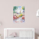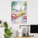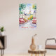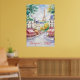 Den här vattenfärgsmålningen skildrar en charmerande gata i Paris, Frankrike. Ikonen Eiffel Torn står högt i bakgrunden, medan charmering av kaféer och affärer följer kullstolpgatan. Det varma färg och de ömtåliga penseldragen skapar en romantisk och inbjudande atmosfär.
