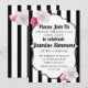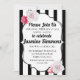 Denna inbjudan är mycket chic och feminin. De svart-vita ränderna ger designen en modern parisiskt känsla medan rosorna gör den delikat och feminin. Denna inbjudan är perfekt för födelsedagar, quinceanera, baby shower och en mängd olika speciella tillfällen.