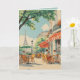 En lysande illustration av en solig Paris-caféterace med rasstolar, rödstrimlade markeringar och Eiffel Torn:s åsikter. 1950-talets retestetiska och varma ambians gör det till en perfekt biet för nostalgisk eller resemetterad dekoration.