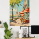 Parisisk kafé med Eiffelvy Poster