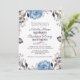 Parisiskt Charm Blå & Rosa Blommig Chic och Shabby Design med Målade Rosor, Blad och Blommor. En Charmerande och Lekfull Utseende, med Rosenskär, Dammig Blå, Mauve, Mörk Navy Violett färgpalett. Med Handmålade Vattenfärg Blommiga element, Vintage Klassiska Skrift Typsnitt - Bröllopsinbjudningar!