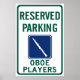 Reserverad parkeringsskylt för oboister. Tillgänglig stavning av REAL-metoden (hautbois) eller den gemensamma vägen (oboe).