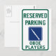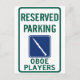 Reserverad parkeringsskylt för oboister. Tillgänglig stavning av REAL-metoden (hautbois) eller den gemensamma vägen (oboe).