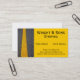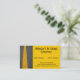 Gul rand, med affärsnamn och information. Stativ ut med detta kort.