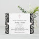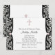 Pärl Cross Rosa Svart Damask Dop Inbjudningar