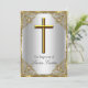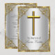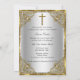 Silver & Guld Dop Inbjudan. Elegant pärl damask ram & guld kors. Anpassa med dina egna detaljer. Observera att alla platta bilder! de har inte riktiga juveler!