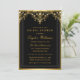 Bröllopsfest Inbjudan. Eleganta svarta & gyllene damastpärlor. Exklusiv Zazzle. Anpassa med dina egna detaljer. OBSERVERA alla platta bilder! De har INTE riktiga pärlor eller juveler!!